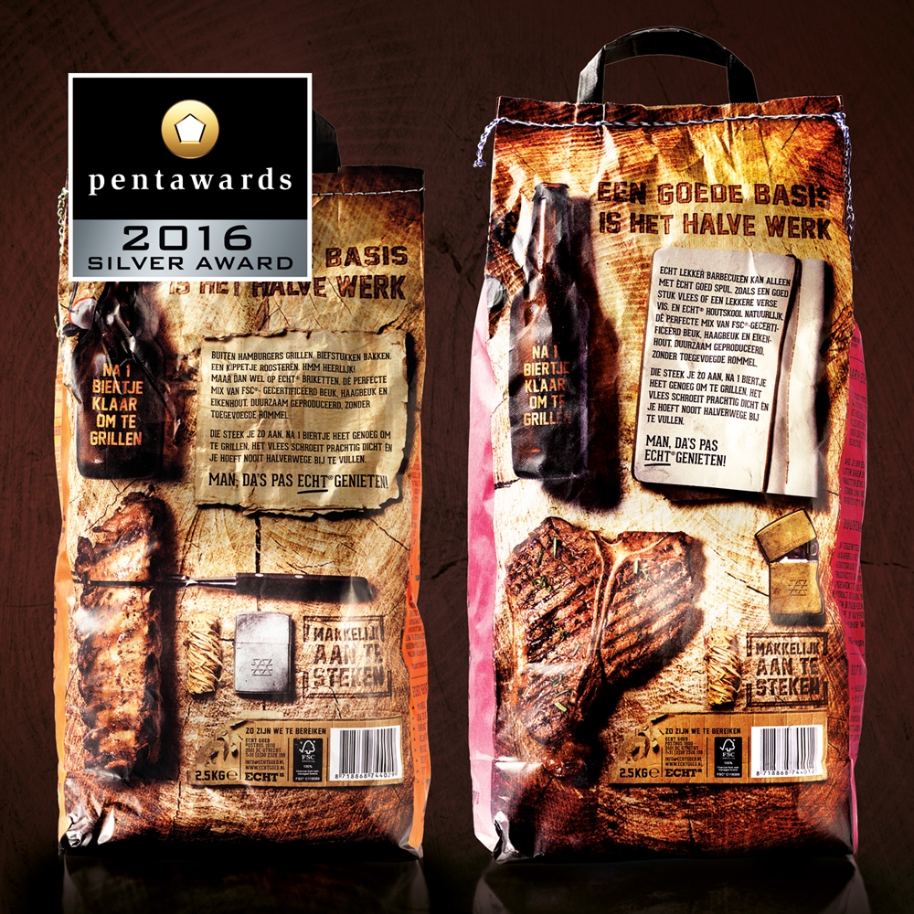 Onze verpakking is met écht goede zorg ontworpen door Brandnew. Brandnew heeft ons enorm geholpen om onze boodschap in barbecue land over de bühne te krijgen. En dat werpt zijn vruchten af! De ECHT® verpakking heeft de Zilveren Pentawards 2016, dé prestigieuze design award gewonnen. Brandnew heeft op de officiële Pentawards de trofee tijdens de ceremonie in Shanghai op vrijdag 23 september in ontvangst genomen. Gefeliciteerd Brandnew met deze prachtige onderscheiding!
